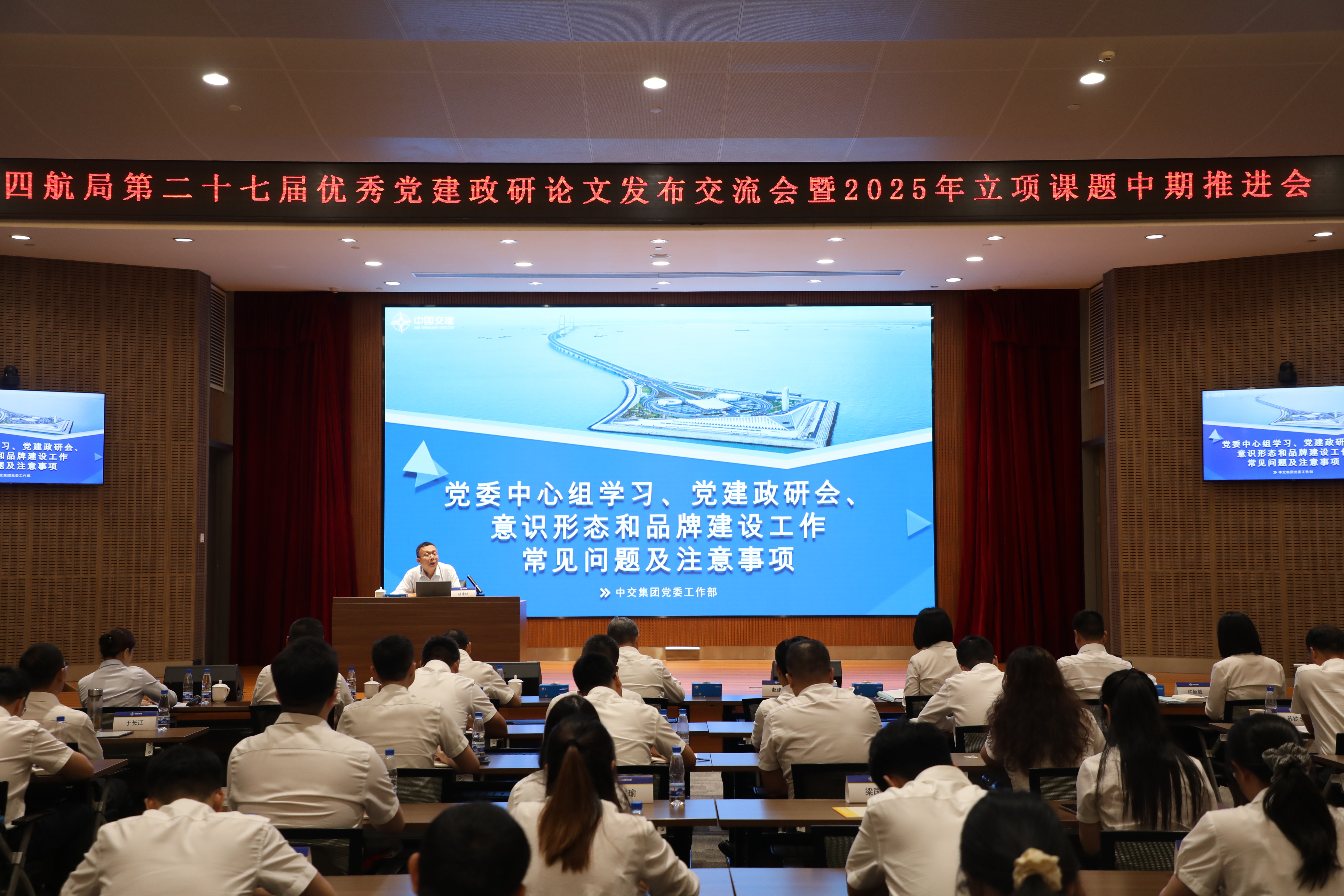 會議采取“現場+視頻”方式召開。四航局黨委職能部門負責人,各單位黨委副書記、黨委工作部負責人,2025年立項課題相關人員,四航局2025年黨支部書記、黨務干部“強基賦能”暨宣傳骨干培訓班學員參加會議。